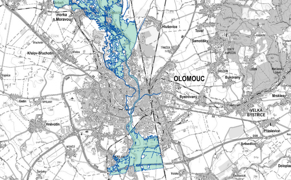 Aktualizace záplavového území. Mapa ukazuje místa ohrožená dvacetiletou povodní